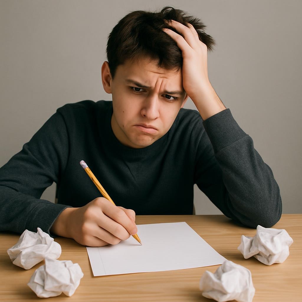 Decorar partes de textos prontos, esquecer e travar a escrita;